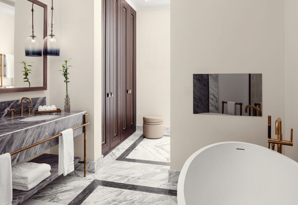 瑞吉套房,一臥室較大套房,1張特大床,河景